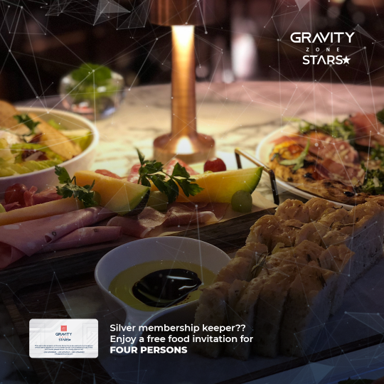Win a lunch voucher for 4 at one of the most prominent restaurants in Egypt when you join the Silver membership program with Gravity Stars.